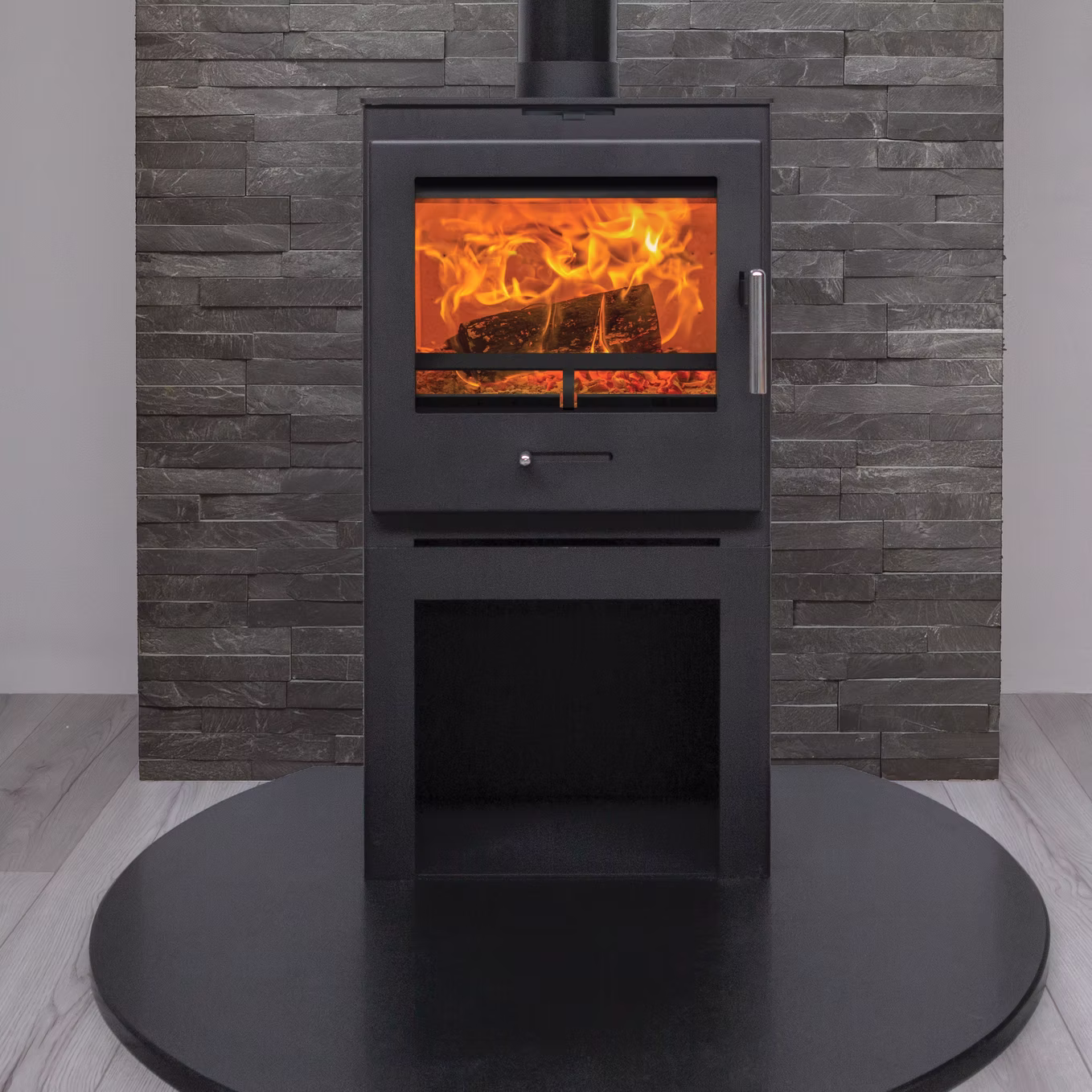 With a large wide window giving an unparalleled view of the fire burning brightly in the firebox and a shallow slimline depth, this stove offers contemporary and minimalist styling with clean burn performance from its efficient firebox that meets Ecodesign and Defra requirements.